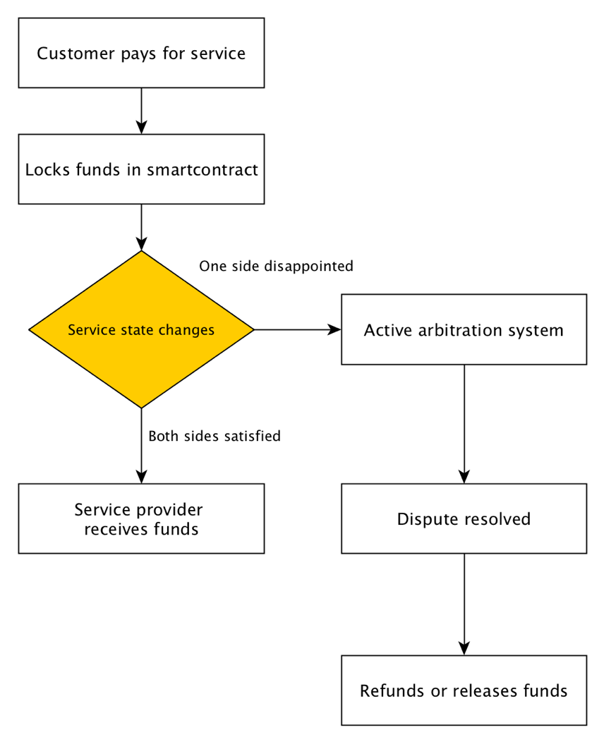 The above flowchart shows how the system is designed. Once the customer selects a service and goes ahead with the booking, he has the option to lock his conditions with the help of smart contracts. Once the service is rendered, both particles are satisfied, the payment will be released. In case of any disputes, Tripio will provide dispute resolution with the help of community self- government mechanisms.