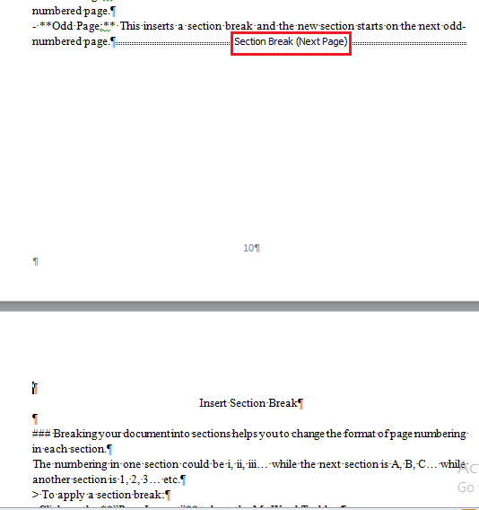 - Odd Page: This inserts a section break and the new section starts on the next odd-numbered page