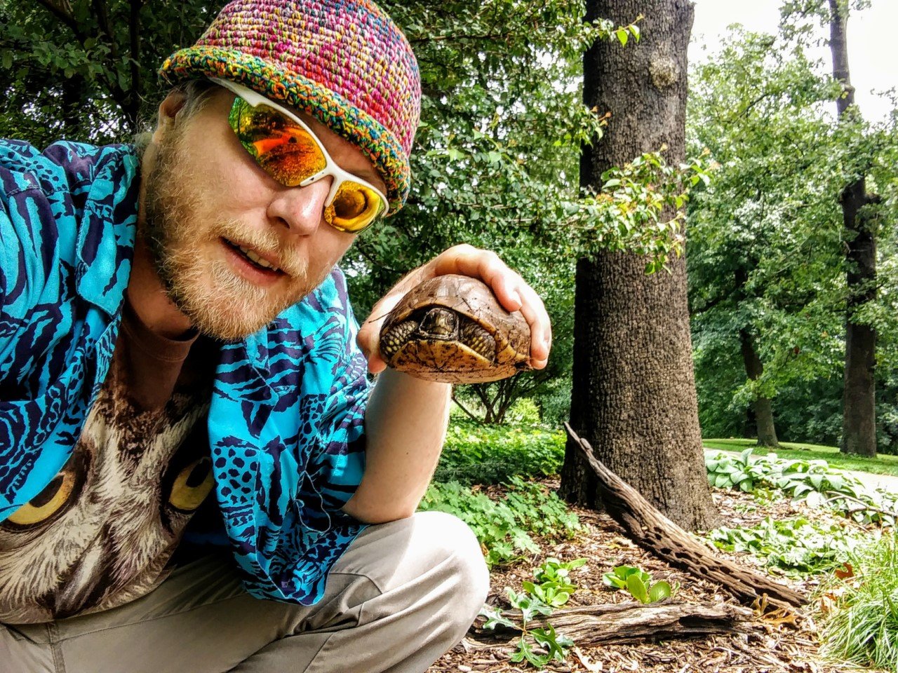 After taking a few pictures I put him back down and he just scurried away in the plants in the picture above to get away from me. I'm sure his home was the park finding him there. The park was pretty big so he should be fine. Being in the middle of town I hope he stays out of the neighborhood roads. Box Turtles are territorial so it isn't good to move them too far away from where you find them. They get lost and lose their turtle families. Who knows, maybe this turtle was once found by someone else and they let him go in the park because they thought it was a safe place for him? Who knows. Either way I'm sure he will be fine.