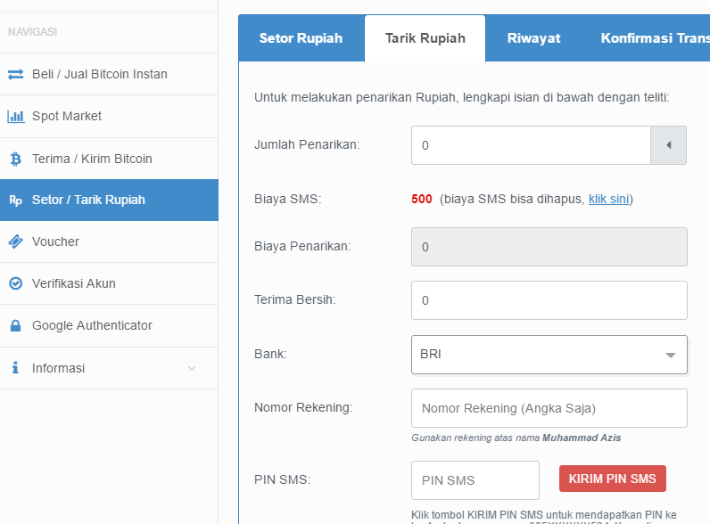 - go to the website bitcoin.id (https://vip.bitcoin.co.id/dashboard) and select spot market