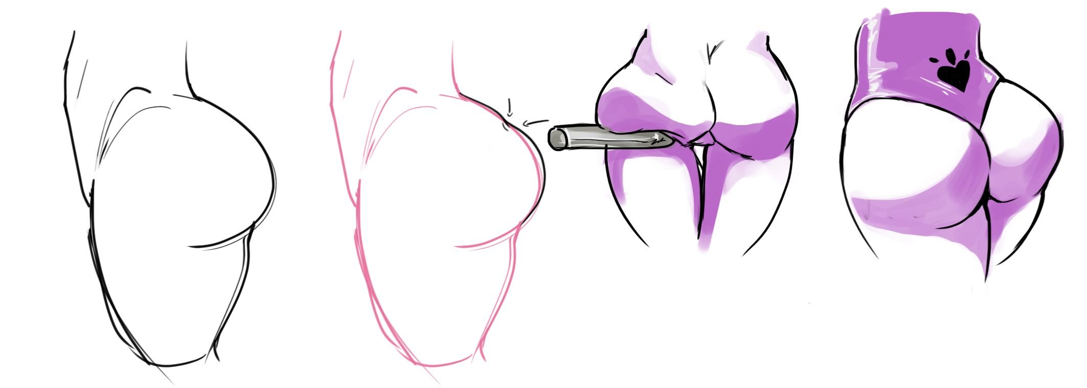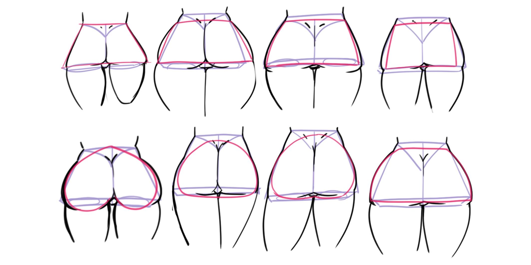 When drawing glutes we are guided by a rectangle. And it is divided in half. To then form a V towards the center.