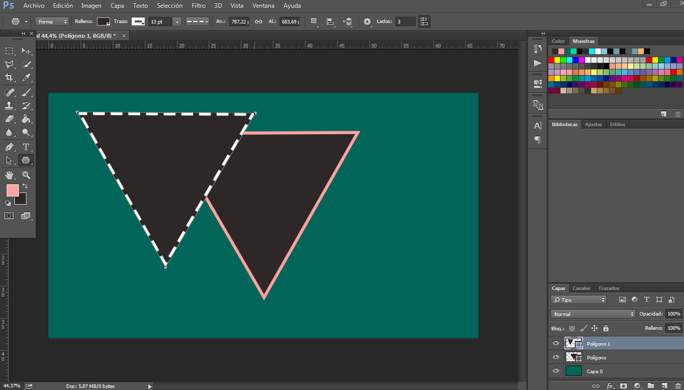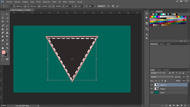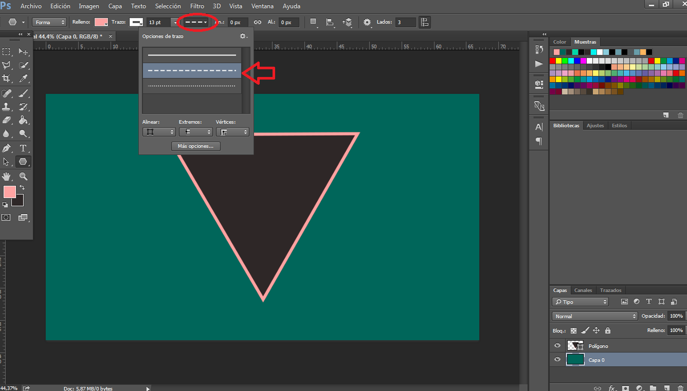 - Una vez mas utilizamos la herramienta polígono con los mismo valores , pero solo cambiaremos el trazo de las lineas,para que ahora sean lineas picadas.