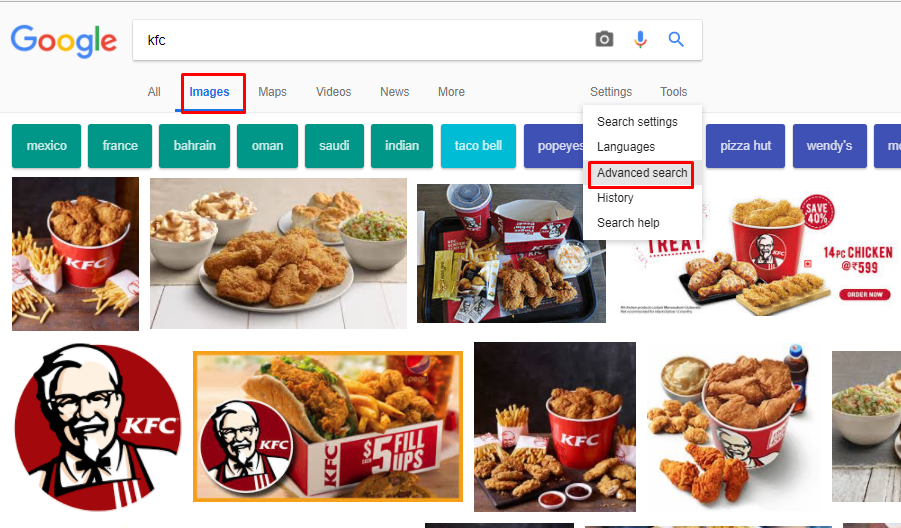 Step #02 In search box look for your key word ( I showing you 'KFC')