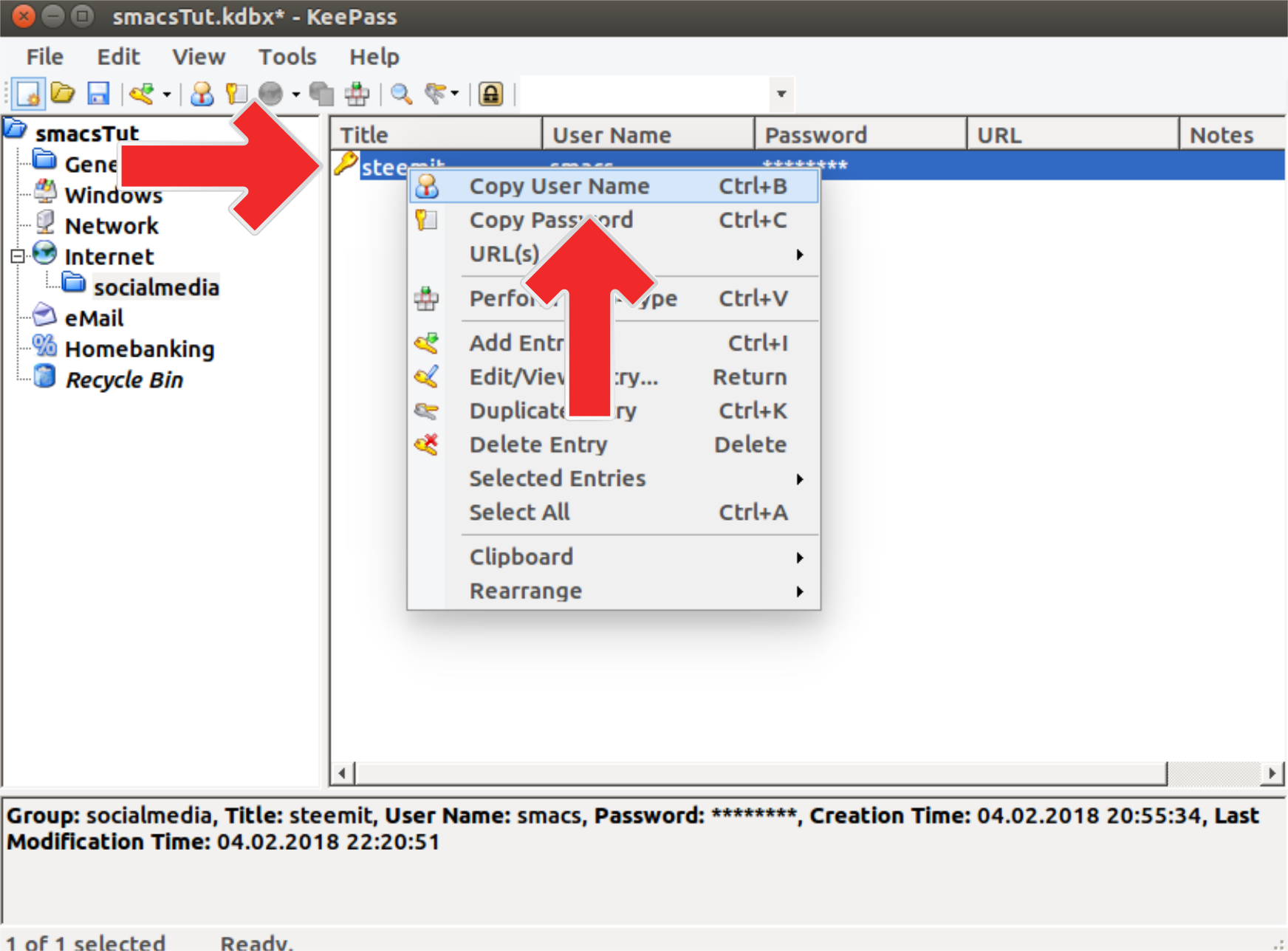 - Wir klicken mit der rechten Maustaste auf den Steemit Schlüssel und wählen „Copy Username“ aus.