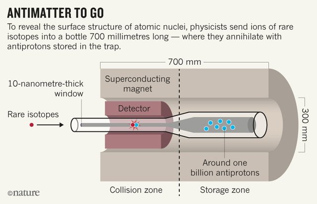 This works like catching antimatter with a bottle where the anti-proton has no contact with any matter. When there is contact with typical matter then a explosion happens most likely because when antimatter and matter collide they have tremendous force and it makes what I think is black holes and other things like the other experiments at CERN.