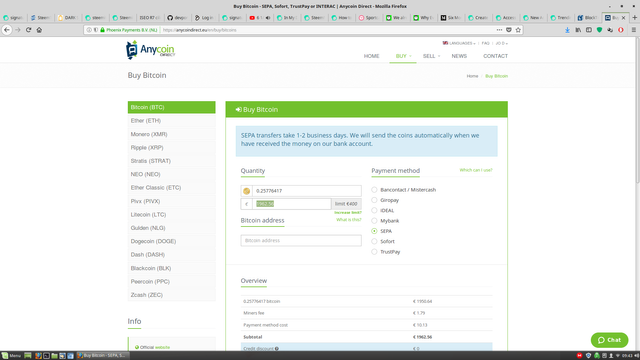 now if i buy a one-time 0.25776417BTC at a place like anycoindirect.eu that sets me back €1962