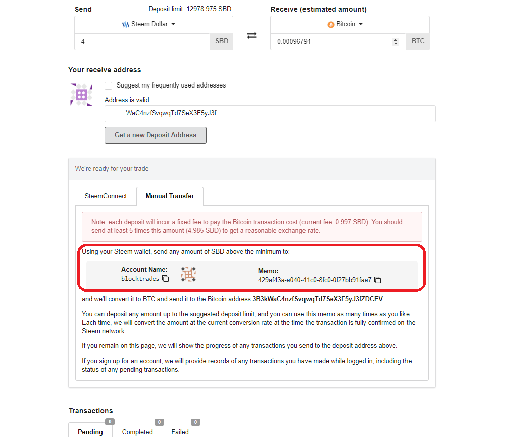 II. Once you are in the blocktrades, be sure to select the send currency as Steem Dollar and Receive currency as Bitcoin.