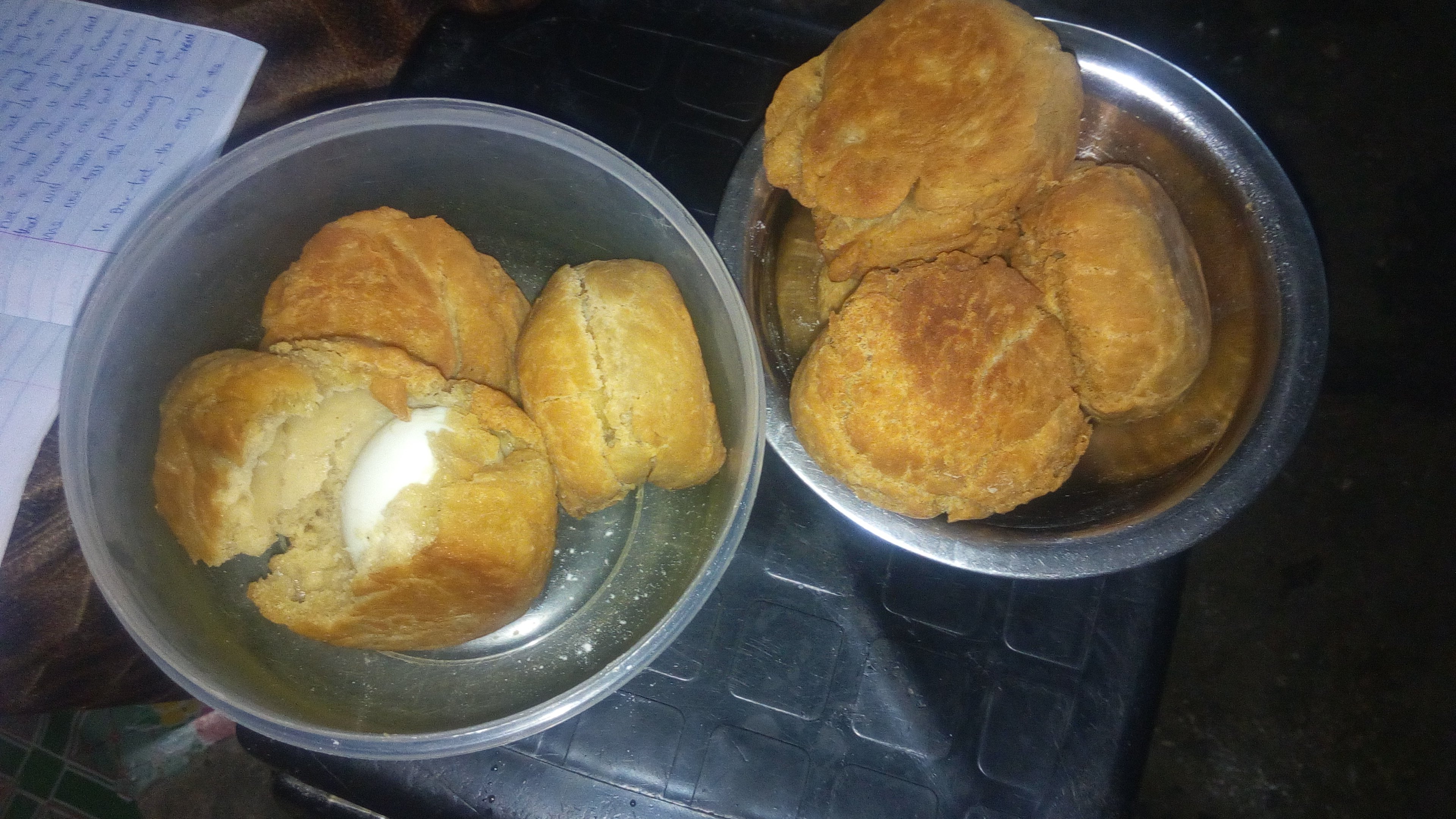 Then I rolled with my hands with the boiled eggs in it. Ready for frying