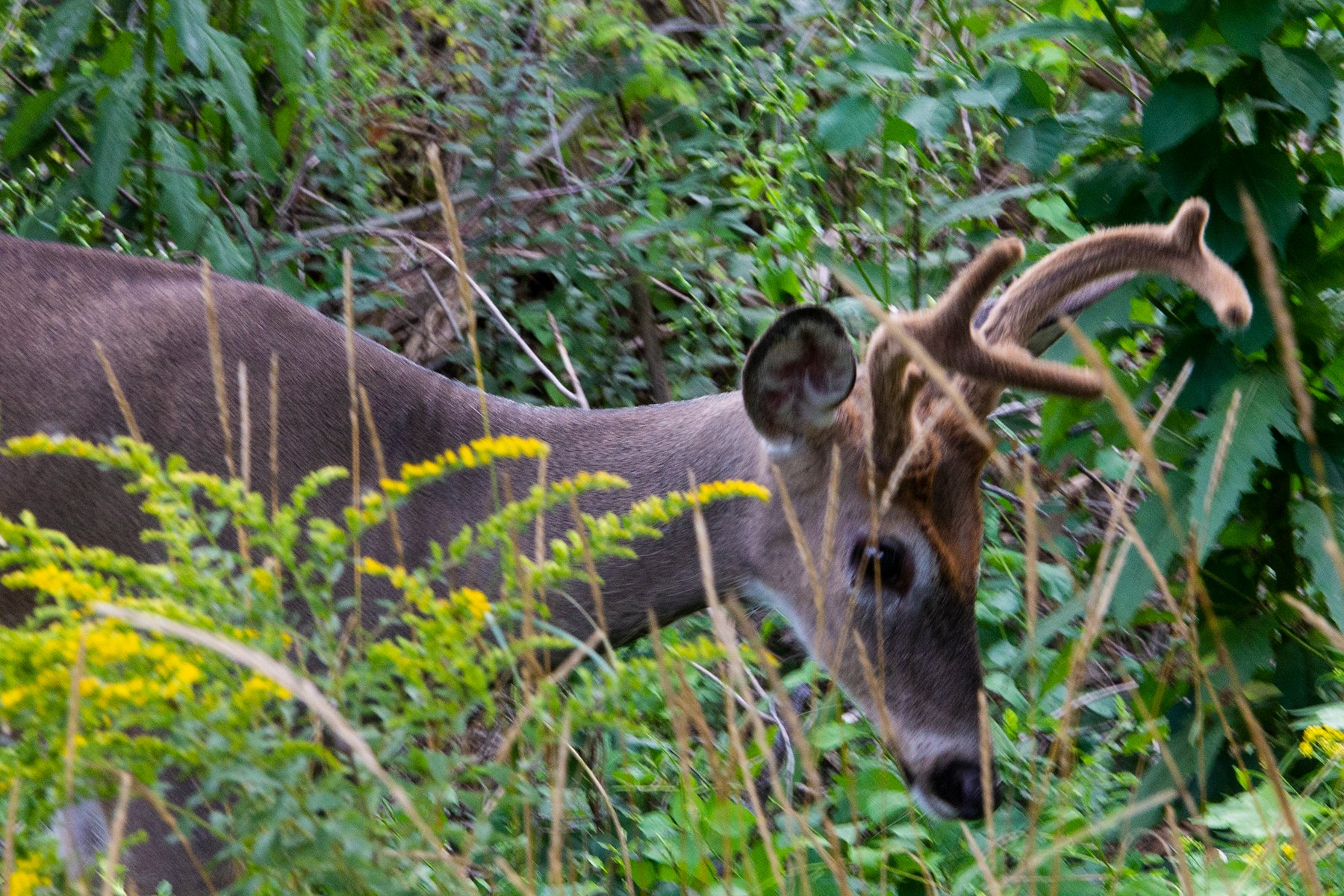 On the way back to my car, I felt a presence along side of the trail. I turned and spotted this guy about 6 feet away from me. He seemed aware of me but was unfazed and continued grazing. I was happy to have my camera with me and snapped away until he wandered off.