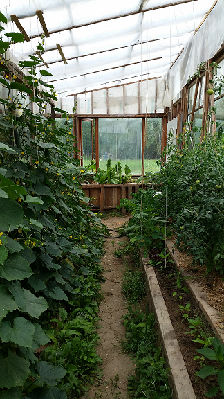 This stove was eventually buried to nearly the top of the heat exchanger, designed to heat up the thermal mass within the inside greenhouse. The hole in front of the stove acts like a cold well, which was the air that the stove burned. As a result, I could burn for 5-6 hours during the day and the thermal mass would be hot enough to keep the greenhouse above +10C / +50F all night when it was -35C / -31F outside. As a result of this stove, I was able to grow wheat grass, barley grass and other sprouts in the greenhouse in the dead of winter OFF GRID! To learn more about our FreeDome Greenhouse, please visit my post I wrote a few months ago.