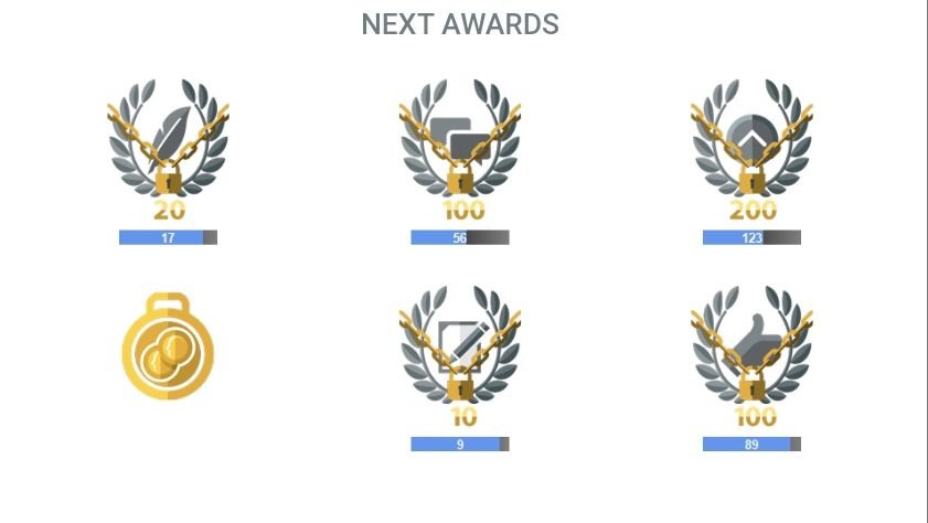 COMMENTS - This award rewards you for the comments you made on others posts or comments. Engage conversations! The more comments you write, the higher your level.