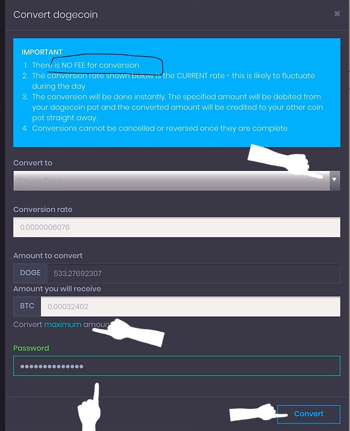 Once you have receive your Dogecoin in your Coinpot, you have to convert it to BTC (free of charge) before transferring to your coins.ph account.
