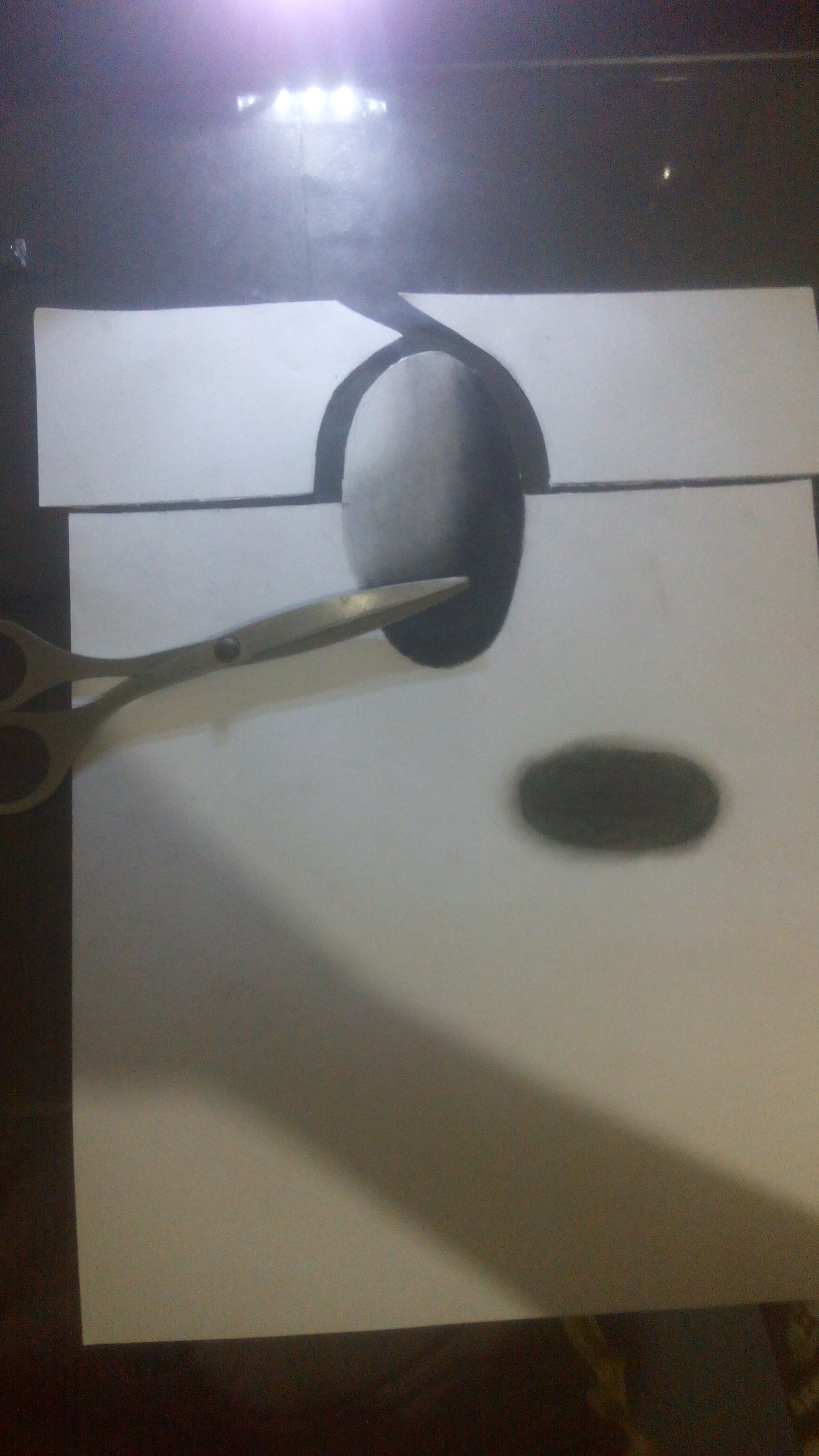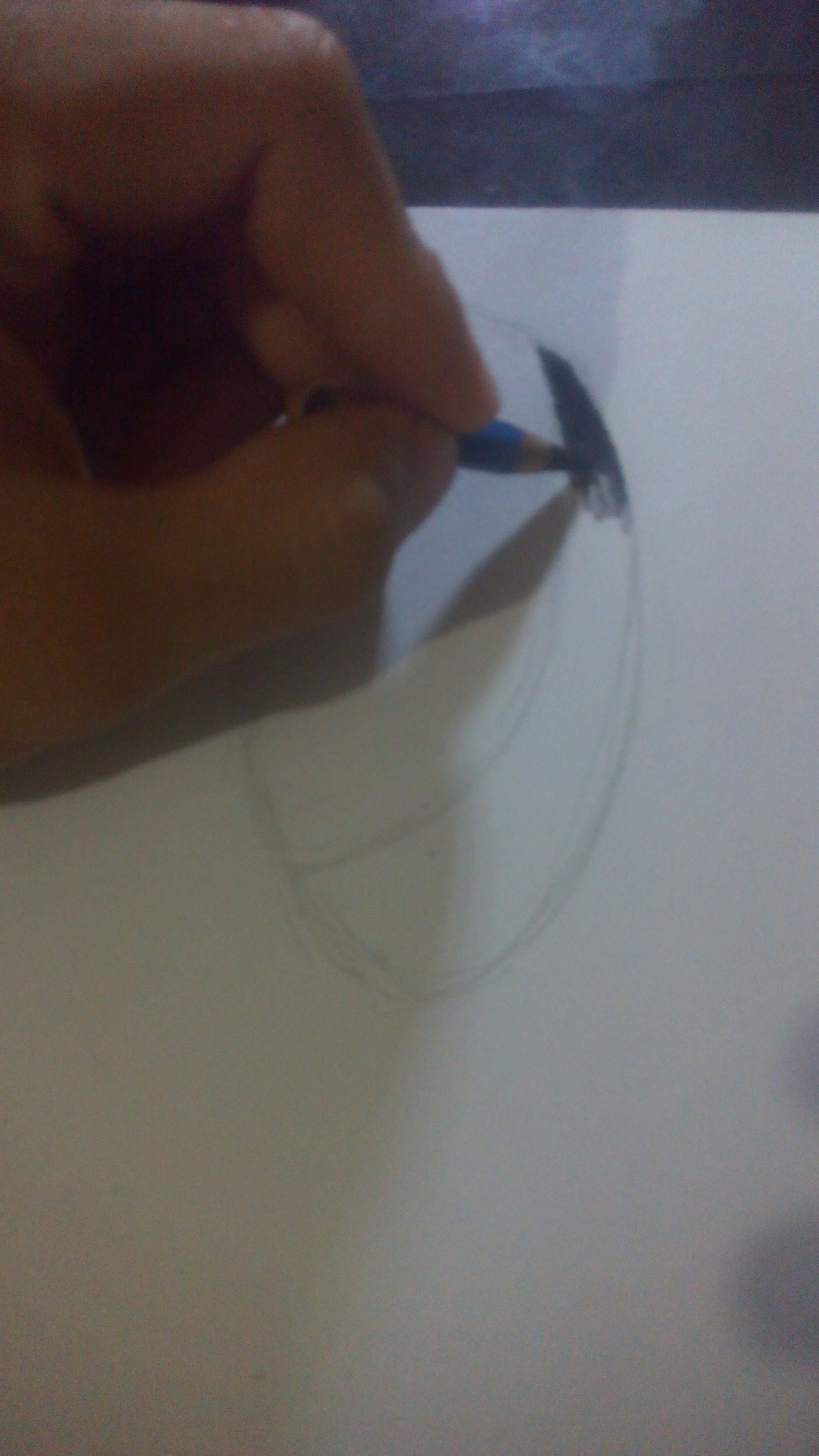Draw another oval in the lower part of your first oval for the shadow. Then fill it with the all dark shade. Then smudge the outline part until it become like this.