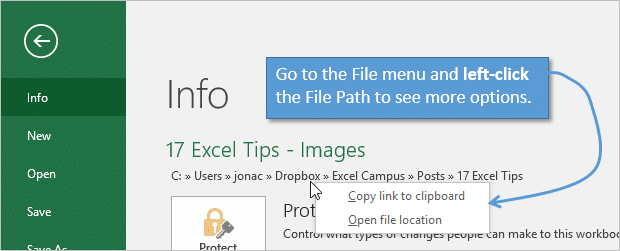 Sometimes when we have an Excel file open we want to quickly see which folder or drive the file is saved on. This is especially true if you are working with files on different servers or mapped drives.
