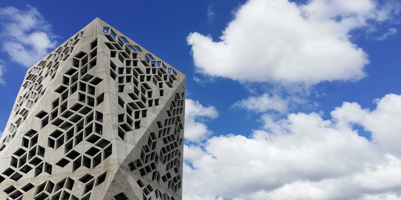 That administrative building has very futuristic, modern architecture which works very well with the area where it's located. It's built right after historic part of the city, next to the railroad from one side and river from another.