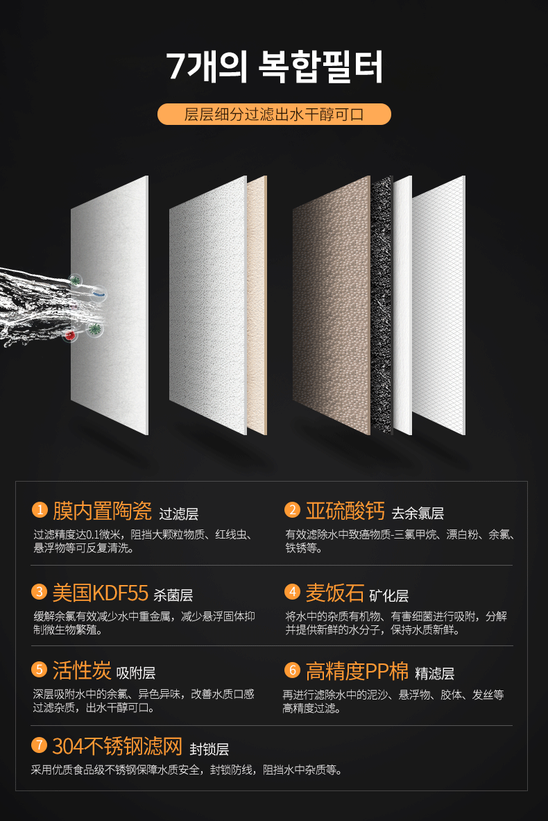 정수모드는 7개복합필터로 되어있어 녹물제거는 물론 잔류염소등 안좋은건 다 걸러낸다고 보면됩니다.