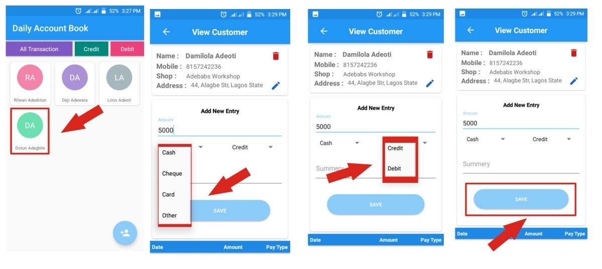 After this process the next step is to click on the customer’s account I opened to fill in a transaction made.