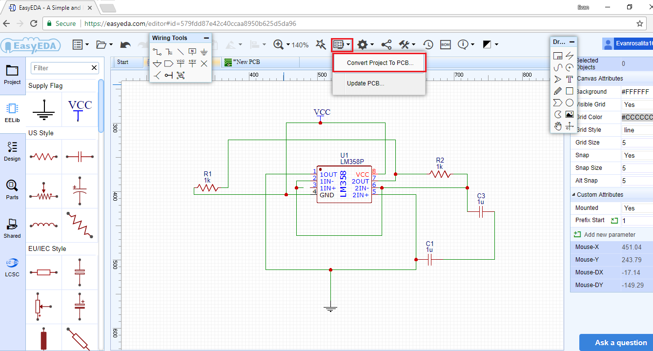 In this tutorial Ill teach you how to convert the schematic diagram into PCB layout using EasyEDA. You can open in the web browser just type www.easyeda.com.You can create your account on EasyEDA