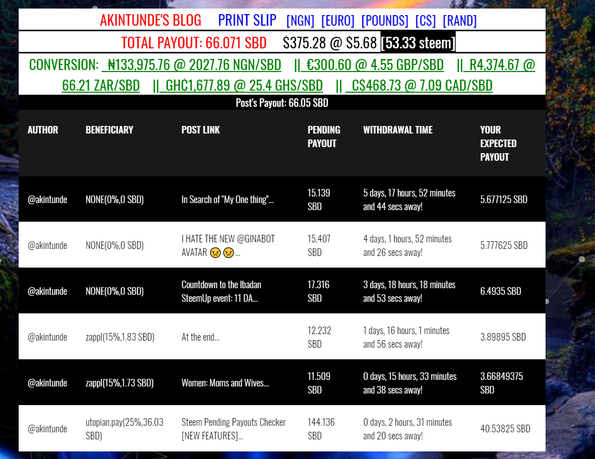 Now, the user can see the amount a certain platform/beneficiary benefitted from his/her post in terms of percentage and SBD. This has actually increased the accuracy of pending payout after retained sp and curation rewards have been removedGraphic Financial Slip