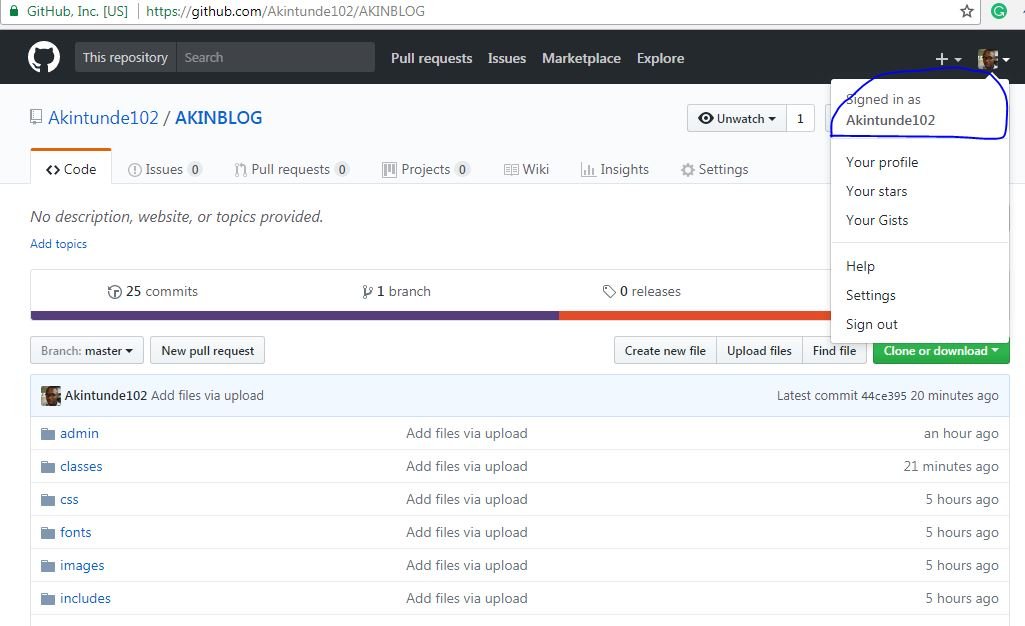 The github address of this project is at https://github.com/Akintunde102/AKINBLOG