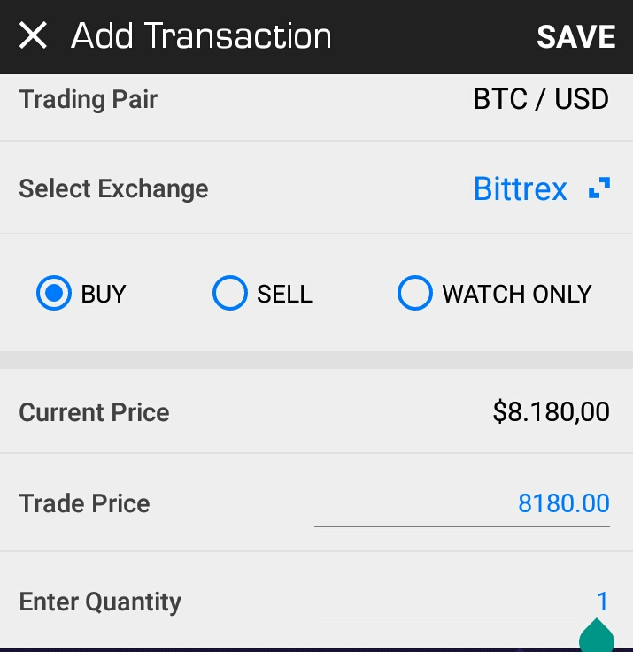 - "Trade Price" ise sizin bu coini aldığınız fiyatı girebileceğiniz bölümdür. Yani eğer belirtilen fiyattan daha ucuza ya da pahalıya aldıysanız, kar ve zararınızın takibi için bu bölüme farklı bir fiyat girebilirsiniz.