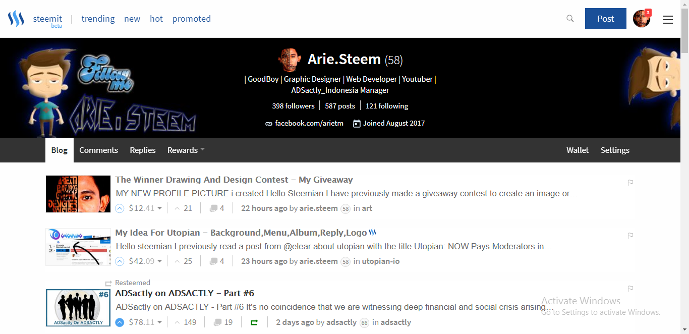 Steemit menjadi media yang sangat populer saat ini , sudah banyak yang menggunakan steemit dan banyak juga yang salah dalam menggunakan steemit dengan membuat fake akun . saya juga telah beralih ke steemit, saya sangat aktif dalam facebook dan juga membuat post tentang design, tapi semua itu tidak menghasilkan apapun untuk saya. jadi saya mulai aktif di steemit dan konsisten.
