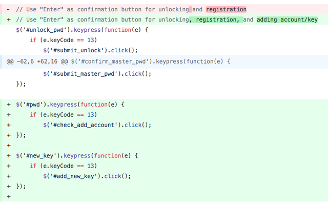 Previously, enter key was working (for clicking the confirm button) only for unlocking and registration, and it didn't work for adding account and key, which was inconvenient and inconsistent.