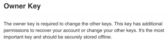 Previously, it says "The owner key is the master key for the account and is required to change the other keys."