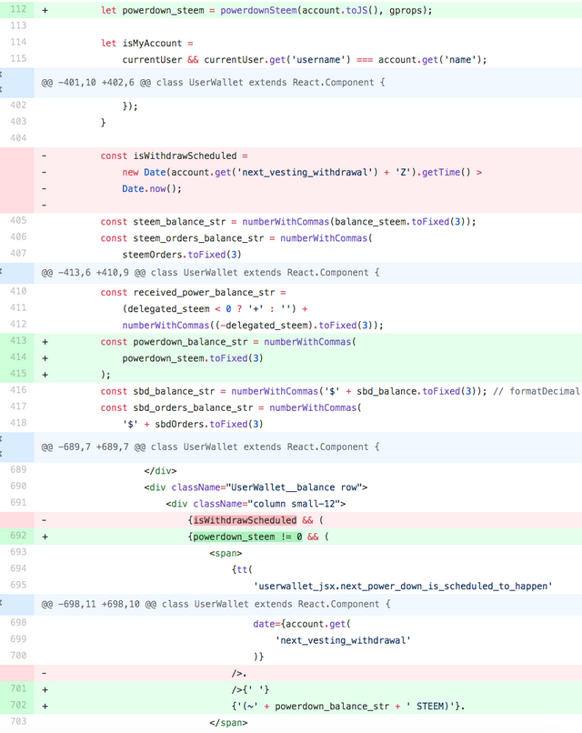 - show powerdown amount (+ typo fix): https://github.com/steemit/wallet/pull/39