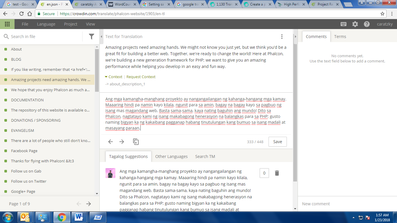 1041 Translated Words for Phalcon Website | Tagalog Translation | First Contribution
