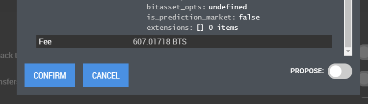 Review and make sure all the details are correct and if you scroll you will notice the fee for creating you own token is only 607 BTS.