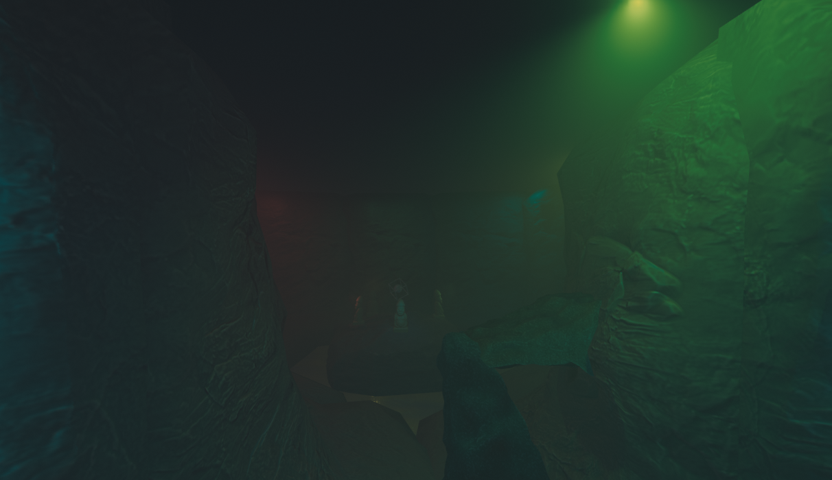 The basic idea of the scene is something like an Indiana Jones scene, with a cave and mystery object in the middle, which is guarded by the keepers around it. And if something is touched everything goes wrong 😊.