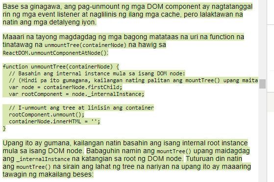 React, also called ReactJS or React.js, aims to be speedy, simple, and scalable. It is a declarative, efficient, and reliable JavaScript library for building user interfaces. From what I have learned from the contents of the strings I have translated so far, it is maintained by the same engineers behind the Facebook and Instagram. A lot of big companies (like Twitter) are using them. Their translation project in Crowdin is quite big with over 250,000 words to be translated. I have previously submitted contributions of strings that I have translated for them and I am on the 11th folder for the this translation project. This folder has over 4600 words. For this contribution, I have worked on the folder from 43 to 84%.