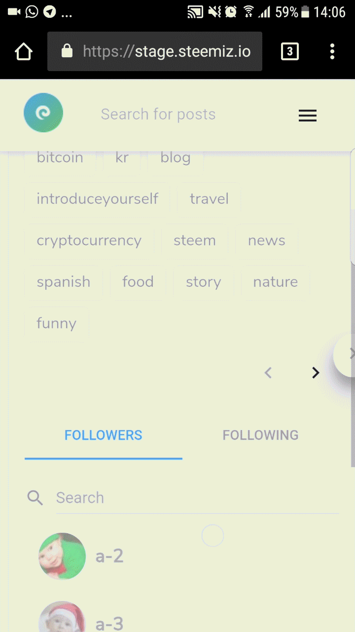 Steemiz.io tidak dapat di akses melalui smartphone karena hanya menampilkan tag dan follower.