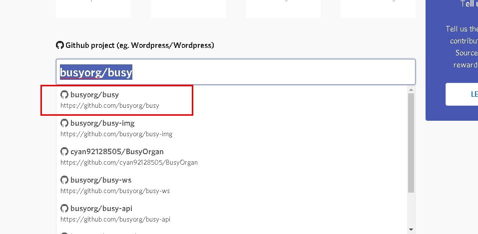 - Di kolom Github Repository tuliskan busyorg / busy, tekan Enter dan klik pilihan yang paling atas. Github adalah platform tempat project Open Source di-hostkan dan Utopian menghubungkan kontribusi yang akan diberikan dengan repositori Busy.org di Github.
