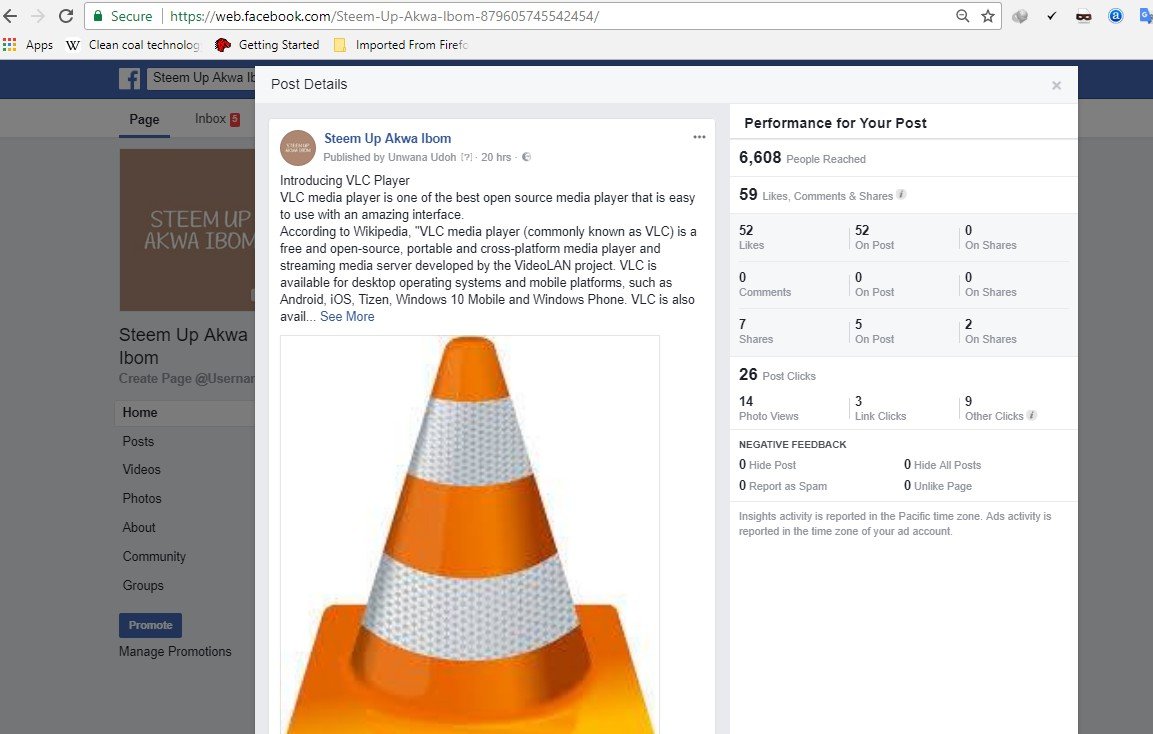 I used the facebook page that I created with the name 'Steem Up Akwa Ibom'. The page would help me reach a wider range of people with the help of facebook ads.