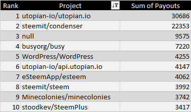 It looked the same with total rewards - utopian-io/utopian.io and steemit/condenser got the top two spots.