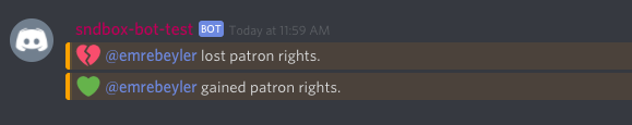 Bot listens the user change events and marks or remove user's patron role in it's internal database.