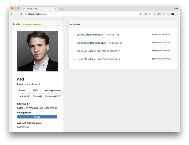 Introducing steem.rocks - An activity feed for steem accounts