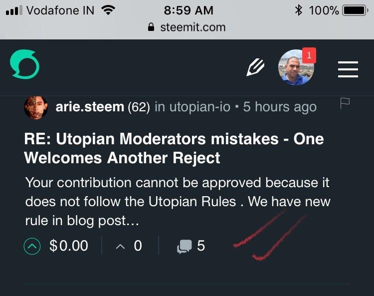 Also you can view my home page snaps of rejected post still showing under review message, Seems utopian will keep it on hold for change decisions already taken. It should simultaneously disappear when it got rejected by moderators.