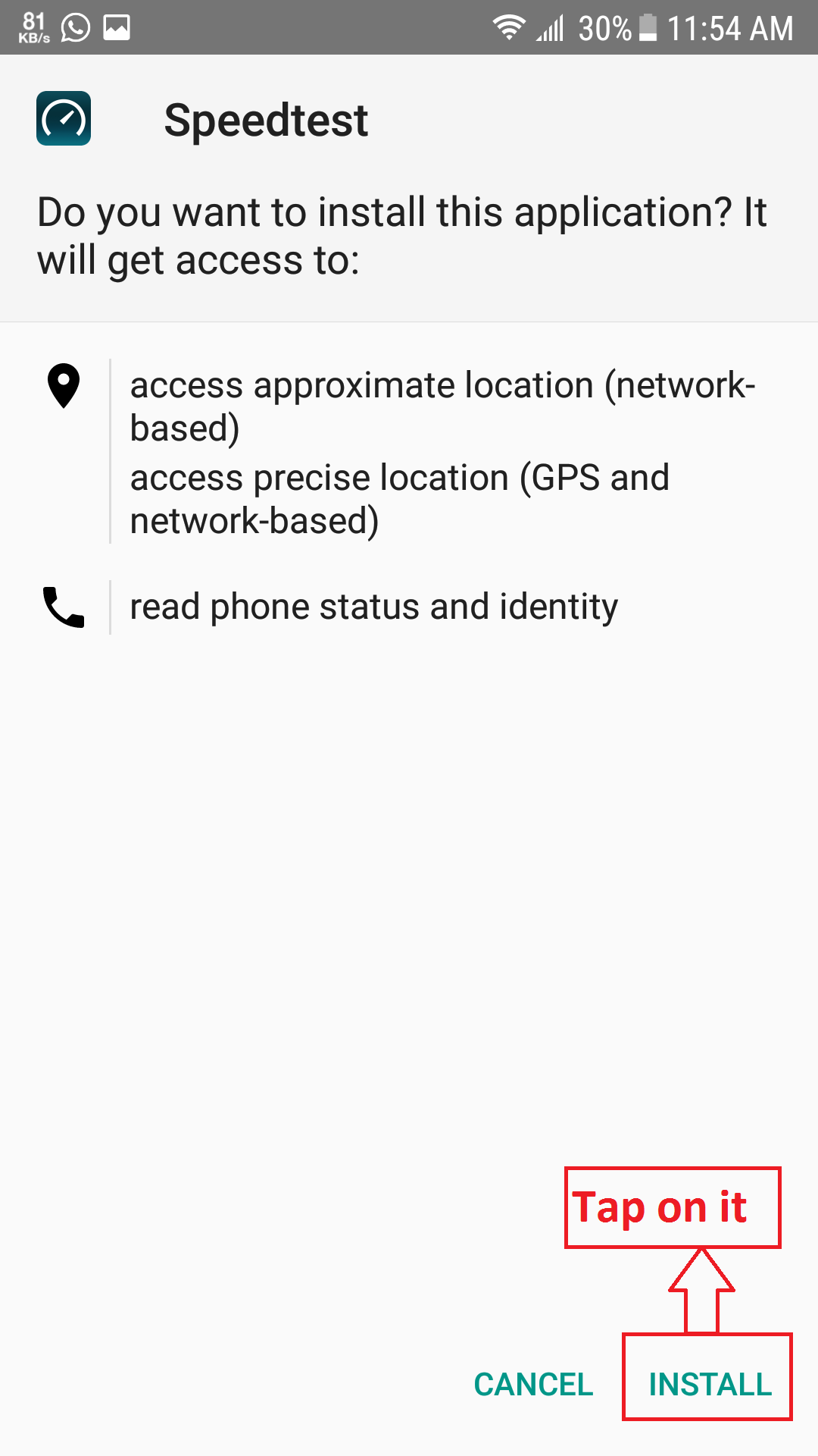 ~Now again its automatically ask fot installing(tap on install) and it show a security Notice