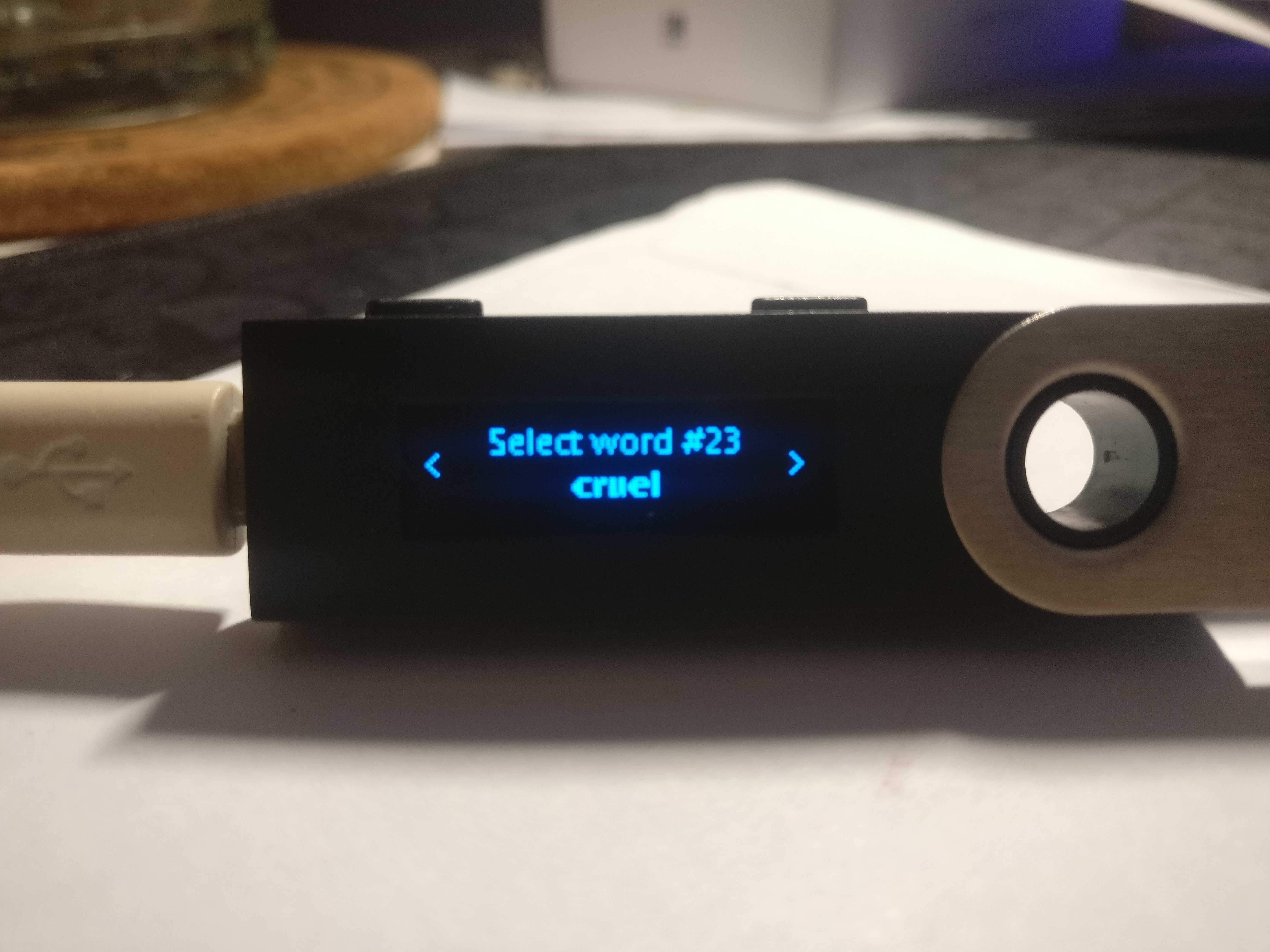 After all 24 words have cycled through the final step is to confirm that what you have written down on paper is correct.