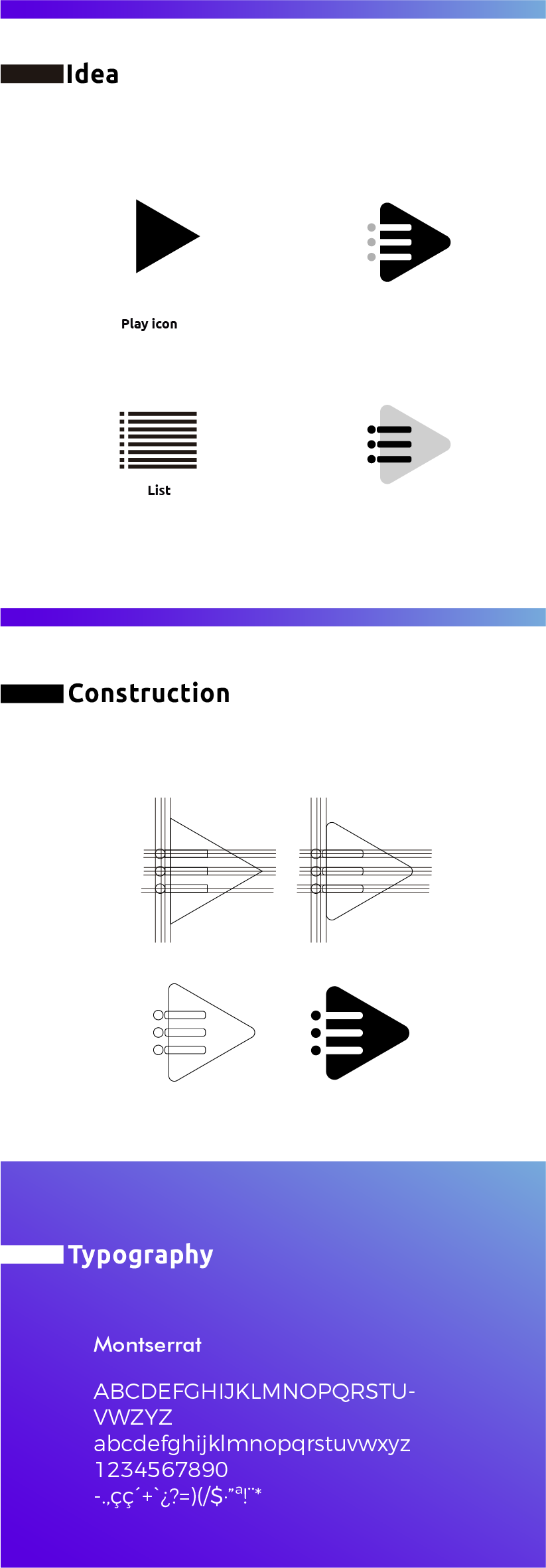 I decided to work with the form of the icon Play and join it to a list, I placed a negative space that represents a list, I liked the effect that this gives the icon. The truth is that the concepts were quite simple, so I worked hard to unite them in a unique and modern.