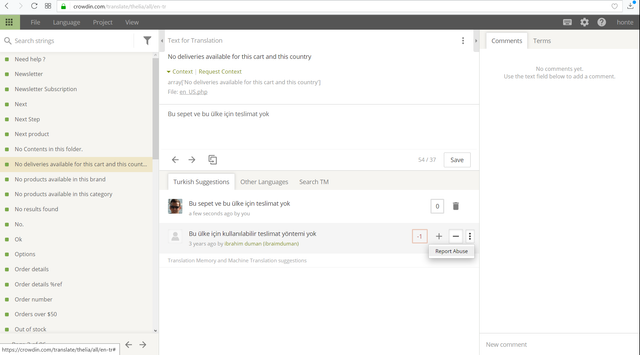 Thelia Project-English to Turkish via Crowdin (Part-1)