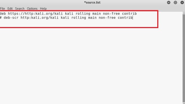 7. Then replace the live-cd repository with the repository on the official linux link, ie: https://www.kali.org/news/kali-linux-repository-https-support/