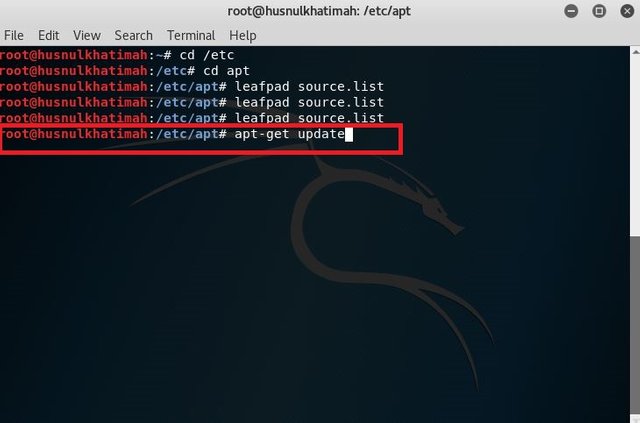 9. Then type apt-get update command to update the repository.