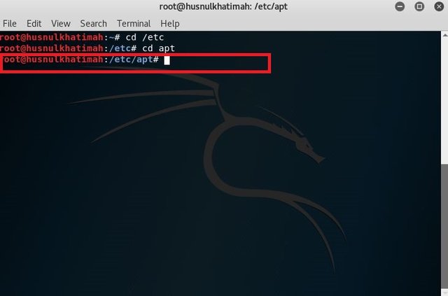 5. Then enter into the apt directory by typing cd apt command.