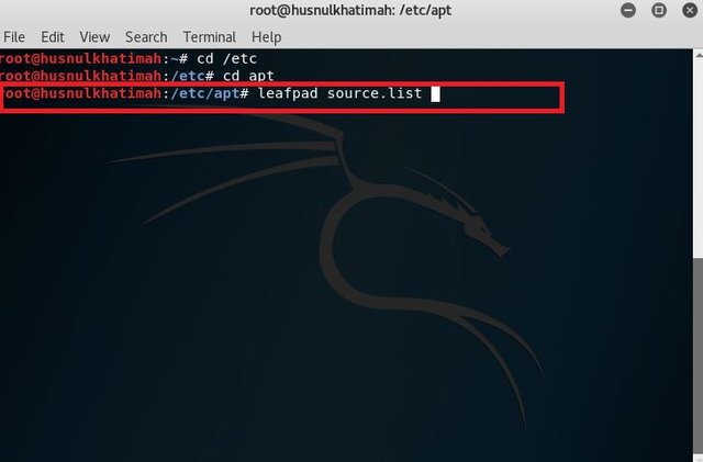 6. Next type the leafpad source.list command.