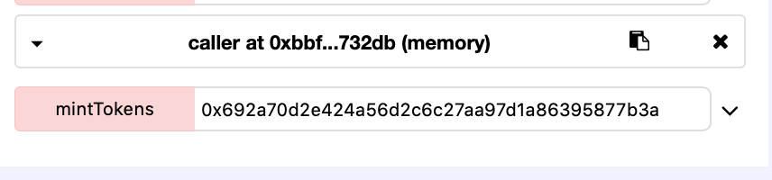 But, if someone that is not the creator, and is not calling the callee through the caller, that is, someone tries to mint tokens for themselves on the callee, this is the error he will face: