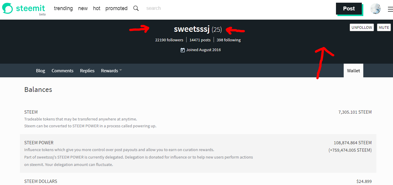 when I click inside the reward and wallet page of @sweetsssj, it does not show reputation score,cover image and profile picture of @sweetsssj correctly!